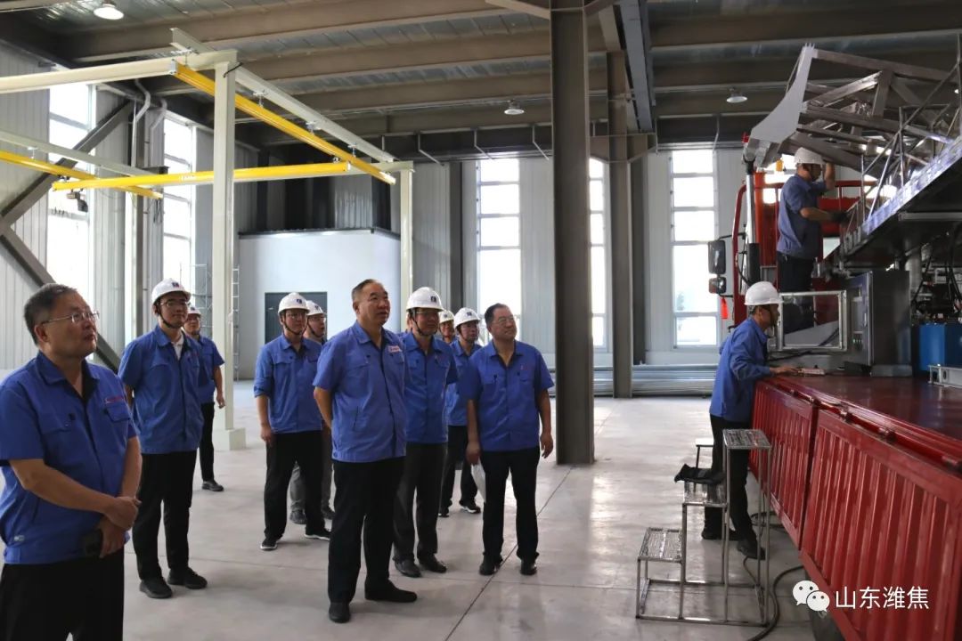 在公司裝配車間現(xiàn)場,劉良玉一行詳細了解機械裝配情況,仔細察看裝置沙袋模擬裝卸雞全流程運行情況,并就機械技術(shù)研發(fā)、制作及電耗成本降低等相關(guān)問題進行深入交流。