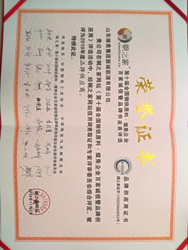 品牌供應(yīng)商榮譽證書